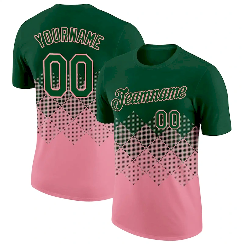 Custom Green Medium Pink 3D Pattern Design Gradient Square Shapes Performance T-Shirt