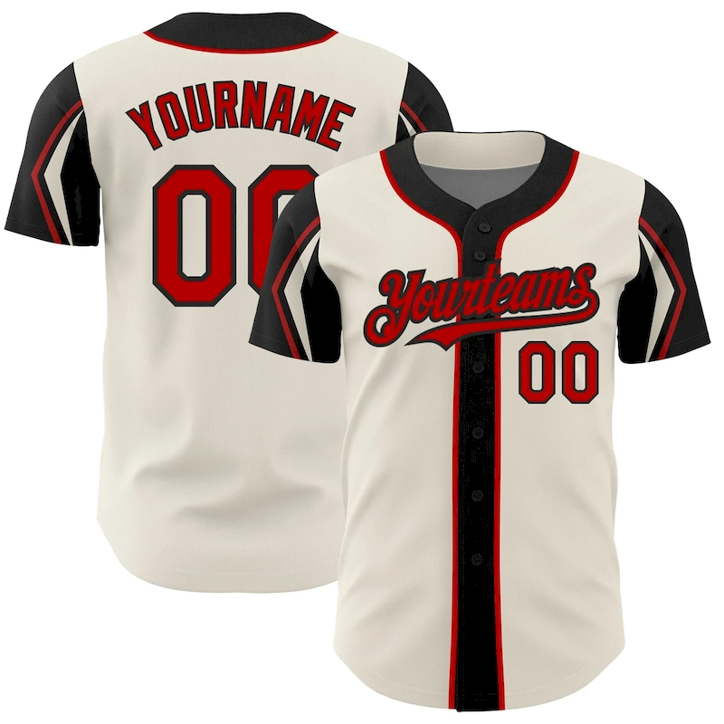 Custom Cream Red-Black 3 Colors Arm Shapes Authentic Baseball Jersey