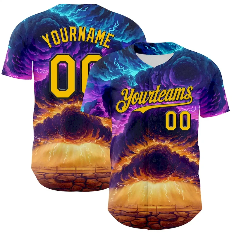 Custom Blue Gold-Black 3D Syntetyc Everstor Authentic Baseball Jersey