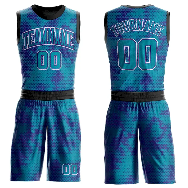 Custom Teal Purple-White Round Neck Sublimation Basketball Suit Jersey