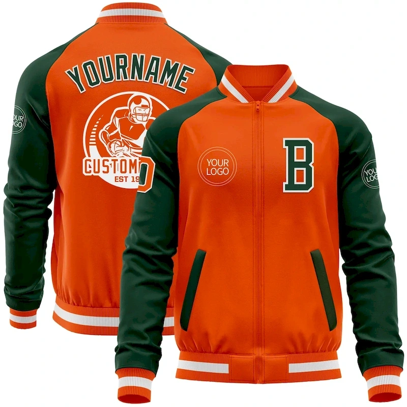 Custom Orange White-Green Bomber Varsity Letterman Two Tone Zipper Jacket