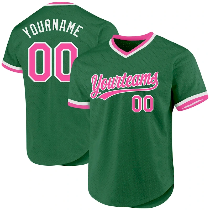 Custom Kelly Green Pink-White Authentic Throwback Baseball Jersey