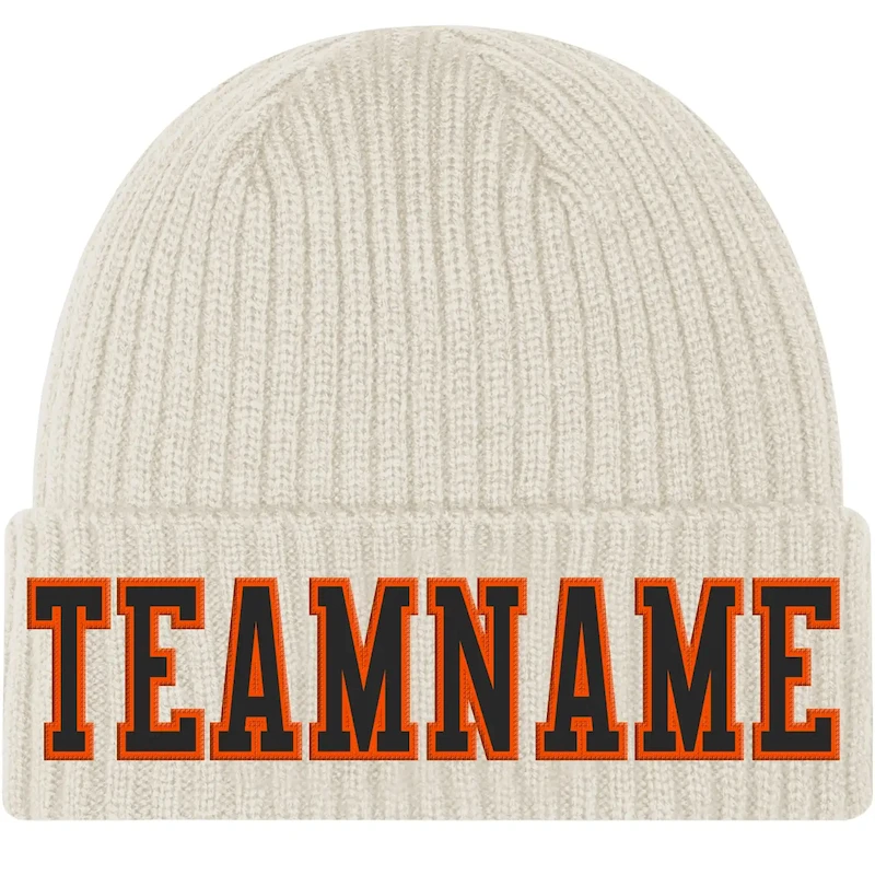 Custom Cream Black-Orange Stitched Cuffed Knit Hat