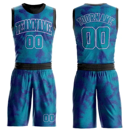 Custom Teal Purple-White Round Neck Sublimation Basketball Suit Jersey