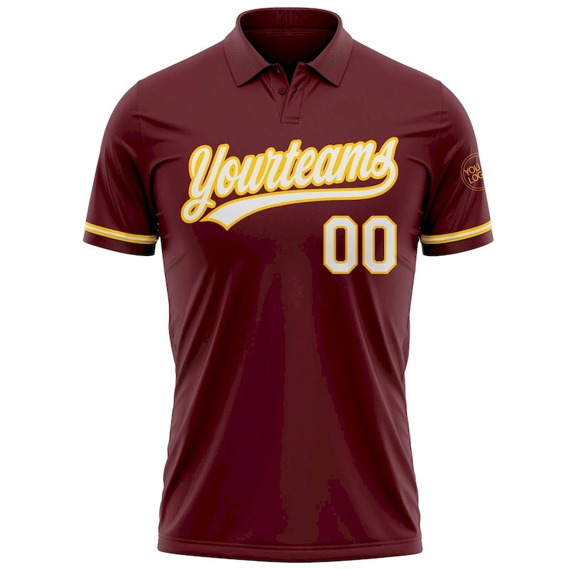 Custom Burgundy White-Yellow Performance Vapor Golf Polo Shirt