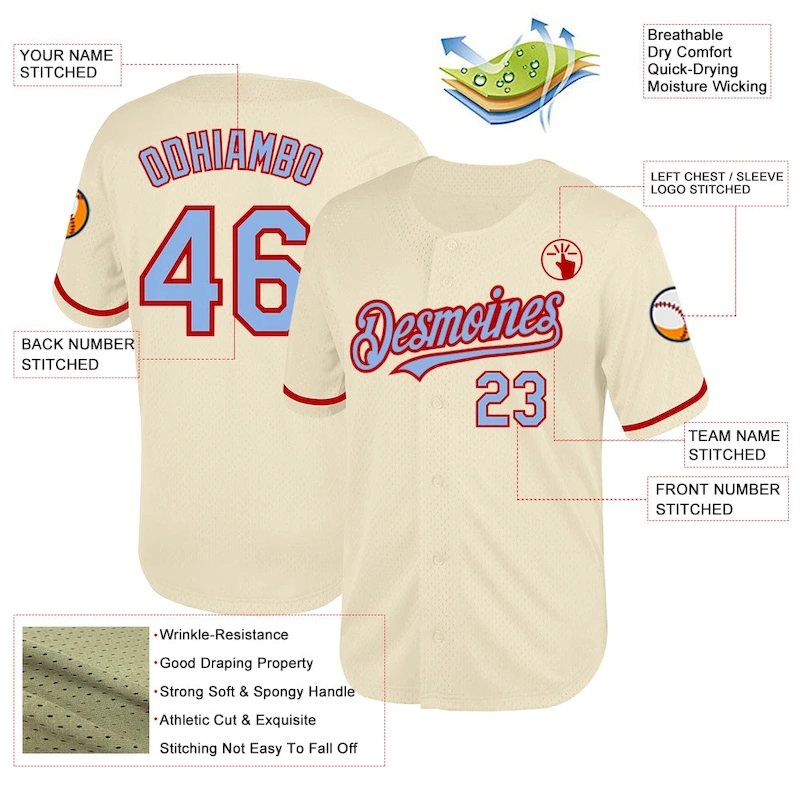 Custom Cream Light Blue-Red Mesh Authentic Throwback Baseball Jersey