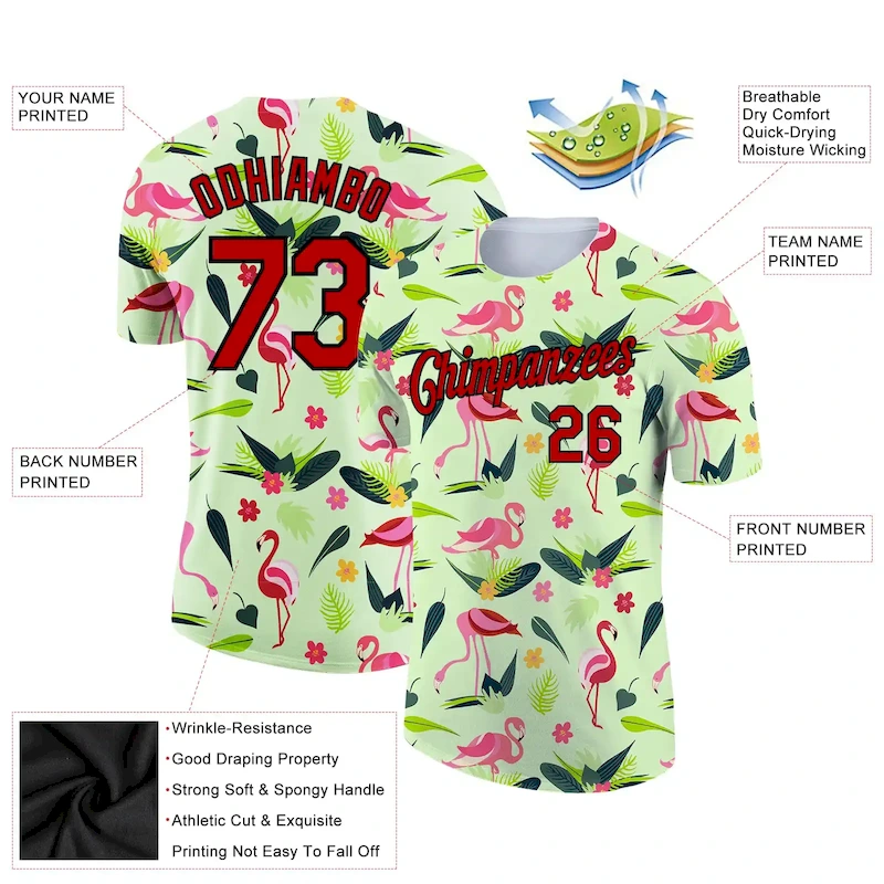 Custom Pea Green Red-Black 3D Pattern Design Tropical Hawaii Flamingo Performance T-Shirt