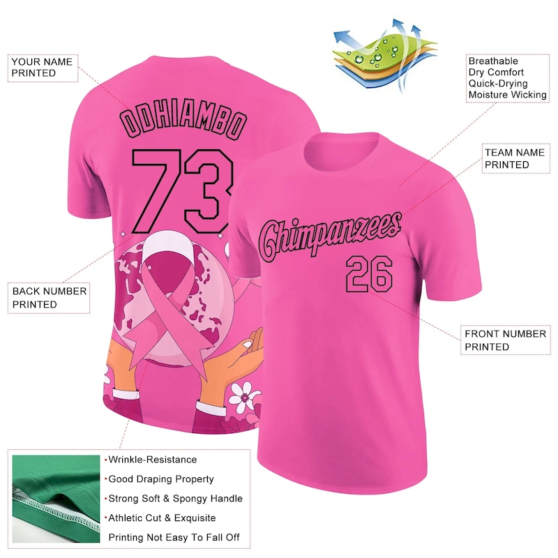 Custom Pink Black 3D Pink Ribbon Breast Cancer Performance T-Shirt