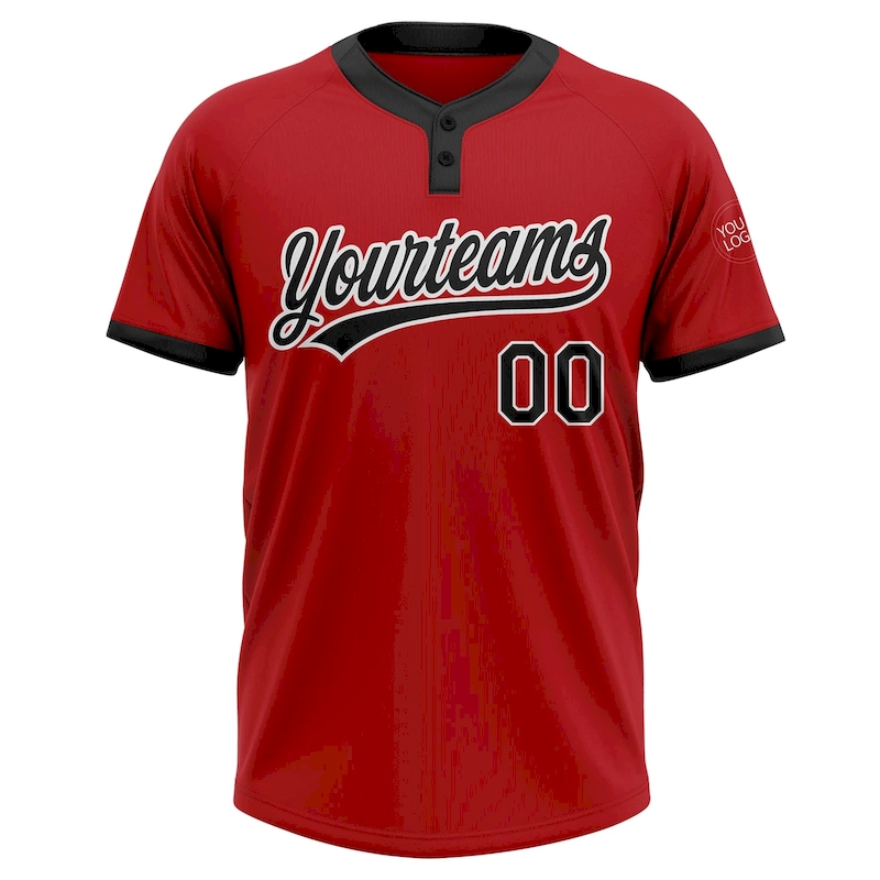 Custom Red Black-White Two-Button Unisex Softball Jersey