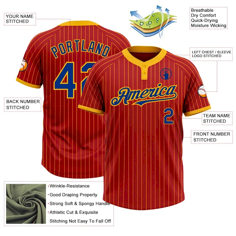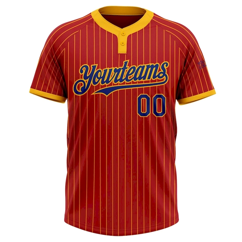 Custom Red Gold Pinstripe Royal Two-Button Unisex Softball Jersey