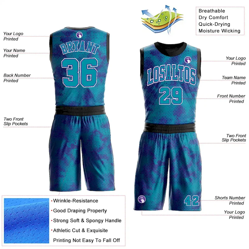 Custom Teal Purple-White Round Neck Sublimation Basketball Suit Jersey